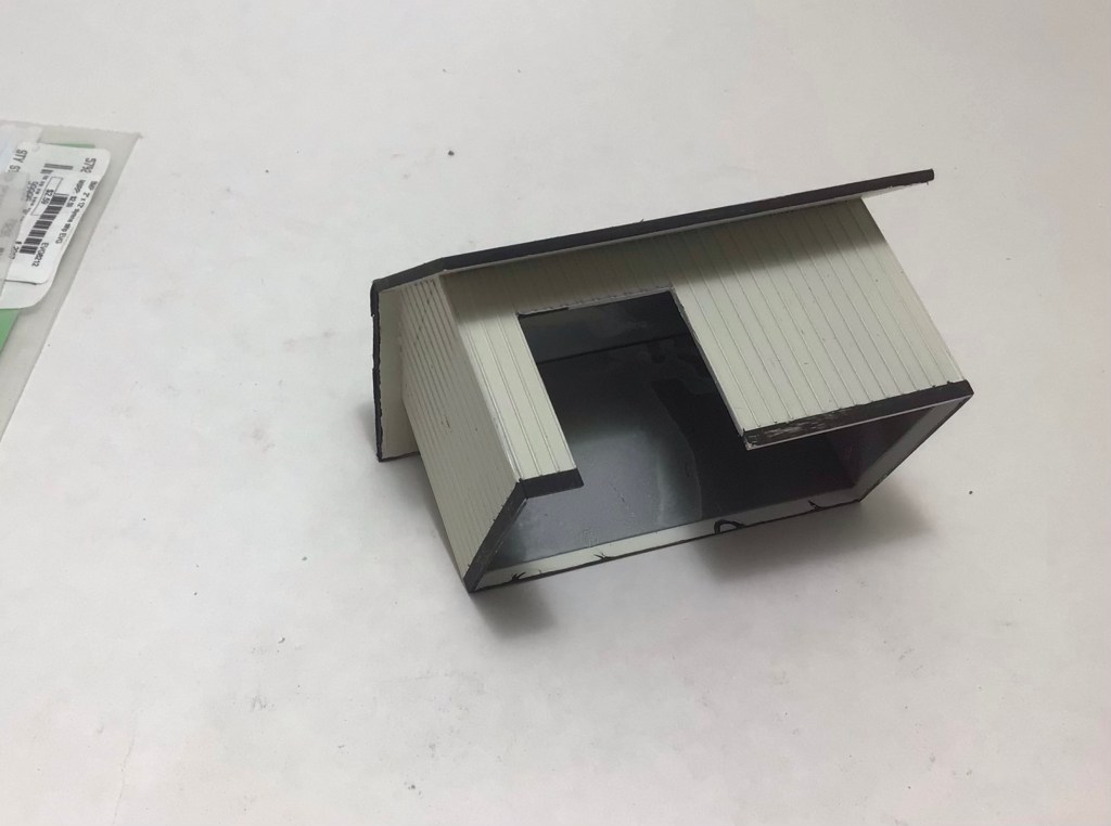 The roof is .060 styrene with the edges painted black to represent the trim boards.